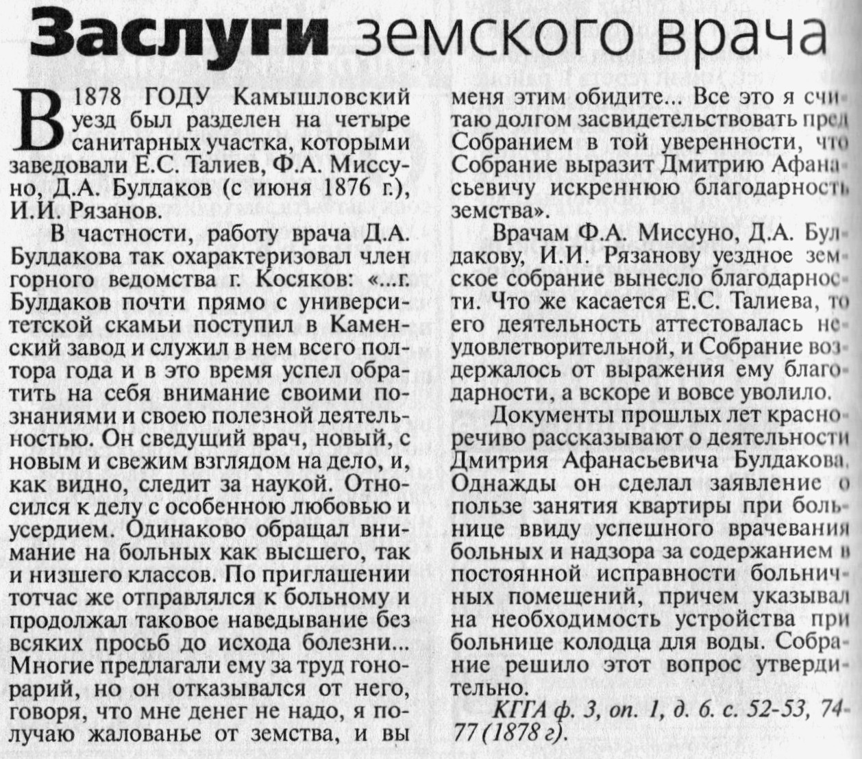 14 февраля - 175 лет со дня рождения Дмитрия Афанасьевича Булдакова (1851-после 1916), земского врача Камышловского уезда Пермской губернии, одного из первых земских стипендиатов, проработавших в уезде 16 лет